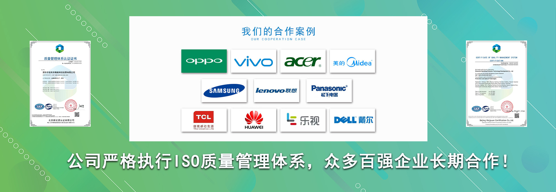 本公司與一些知名的企業(yè)都有合作,如:富士康、西鳳酒、茅臺、五糧液、恒旭包裝、聯想、華為、志高、建力高爾夫、東驊電腦、長城電腦等,我們真誠希望與您合作、為您服務。